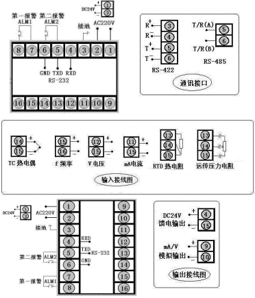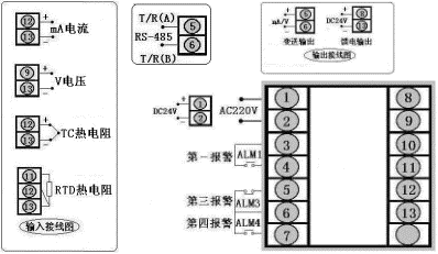 SWP-C801/SWP-C803系列和SWP-S801/SWP-S803系列數(shù)顯表接線圖: SWP-C401/SWP-C403系列和SWP-S401/SWP-S403系列數(shù)顯表接線圖: SWP-C901/C903系列數(shù)顯表接線圖: SWP-C701/SWP-C703系列數(shù)顯表接線圖: SWP-C101/SWP-C103系列智能數(shù)顯表接線圖: