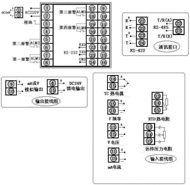 注2:四限控制或四限報(bào)警輸出為四個(gè)繼電器控制輸出,用戶可自行修改內(nèi)部參數(shù)以設(shè)定需要的控制或報(bào)警方式。