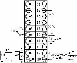 通訊(01)+報(bào)警(02)+(1~5)V變送輸出(04)