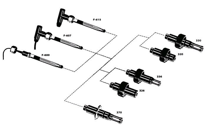 F615要另外選配電纜,F607和F600自帶2米電纜和BNC接頭。特殊長度和接頭請在訂貨時指明。