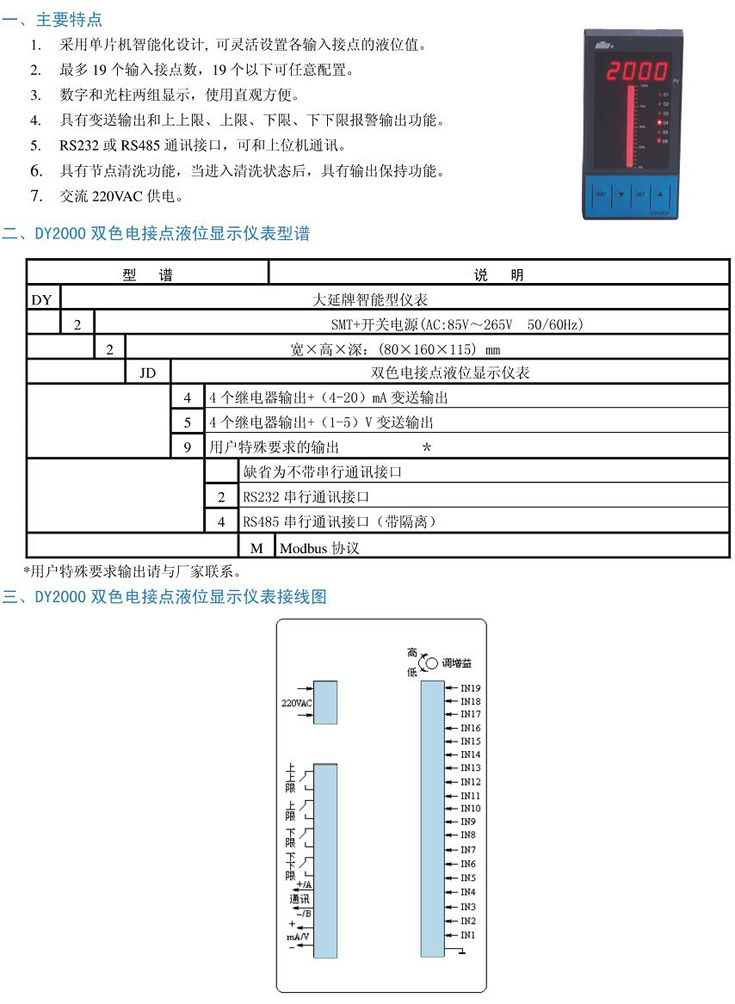 東輝儀表DY2000雙色電接點液位顯示儀表DY22JD44M、DY22JD54M、DY22JD94M、DY22JD42M、DY22JD52M、DY22JD92M。