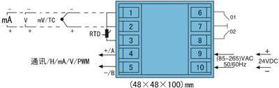 3. (72×72×100)mm、(48×48×100)mm的儀表輸入/輸出接線圖