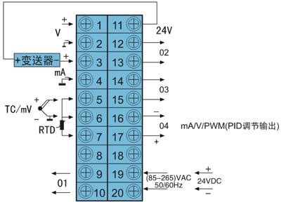 時間程序PID調(diào)節(jié)數(shù)字/光柱儀表接線圖