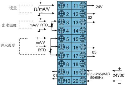 三、DY2000熱水熱量積算數(shù)字顯示儀表接線圖