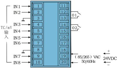 4. 8路巡檢儀表接線圖—(48×96×112) mm和(96×48×112) mm