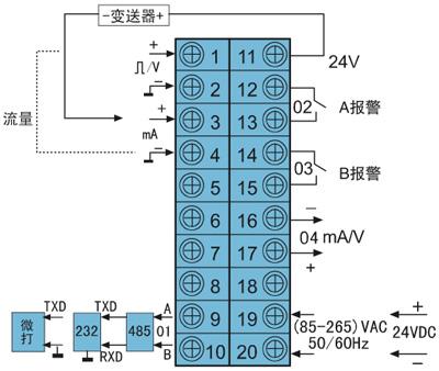 液晶顯示流量積算控制儀表接線圖