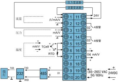二、DY2000液晶顯示補(bǔ)償式流量積算控制儀表接線圖