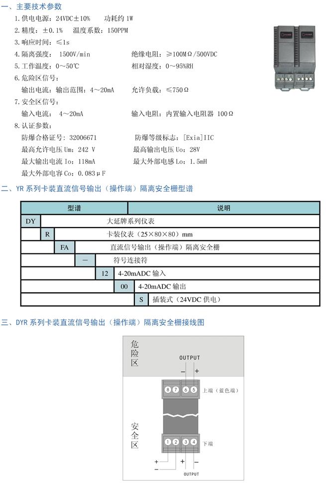 • 產(chǎn)品名稱:DYR(FA)系列卡裝直流信號(hào)輸出(操作端)隔離安全柵