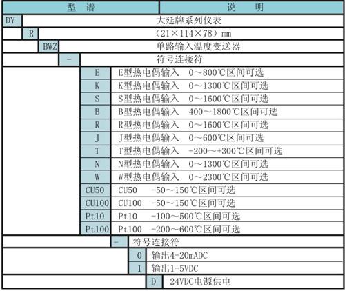 DYRBWZ熱電偶/熱電阻溫度變送器是一種模塊化的卡裝式儀表,它將來自熱電偶的電熱勢/熱電阻的阻值變化轉(zhuǎn)換為與溫度成線性關(guān)系的4~20mADC或1~5VDC隔離信號輸出。