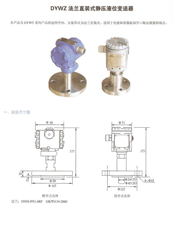 • 產(chǎn)品名稱:DYWZ601法蘭直裝式靜壓液位變送器