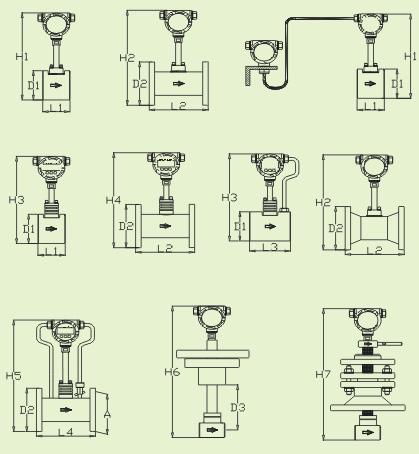 公稱口徑:DYLUG滿管型渦街Φ10~Φ500,DYLUC插入型渦街Φ200~Φ2000