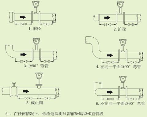 DYLUG、DYLUC型渦街的安裝位置圖                    圖三