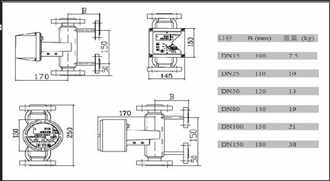 DYFT4螺紋下進(jìn)上出型外形尺寸及重量
