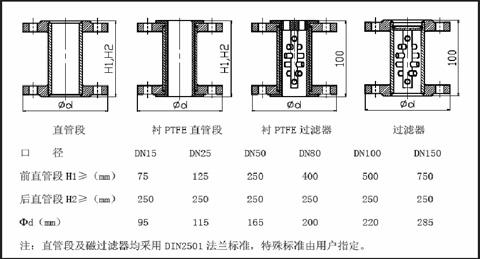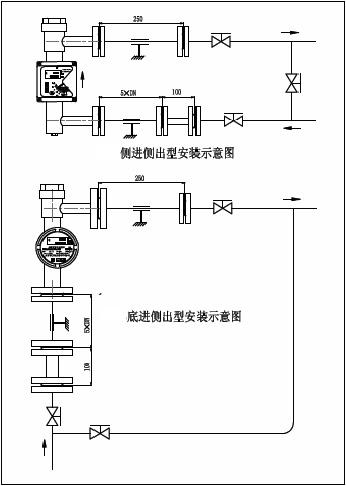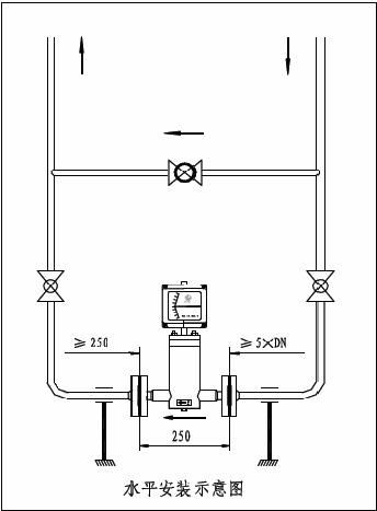 7) 安裝流量計(jì)的位置應(yīng)保證入口有≥5DN 的直管段,出口不≤250mm的直管段;如介質(zhì)中含有鐵磁***物質(zhì),應(yīng)在流量計(jì)前安裝磁***過濾器。