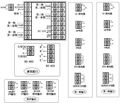 6、可帶串行通信輸出,可與各種帶串行輸入/輸出的設(shè)備進行雙向通信,組成網(wǎng)絡控制系統(tǒng)。